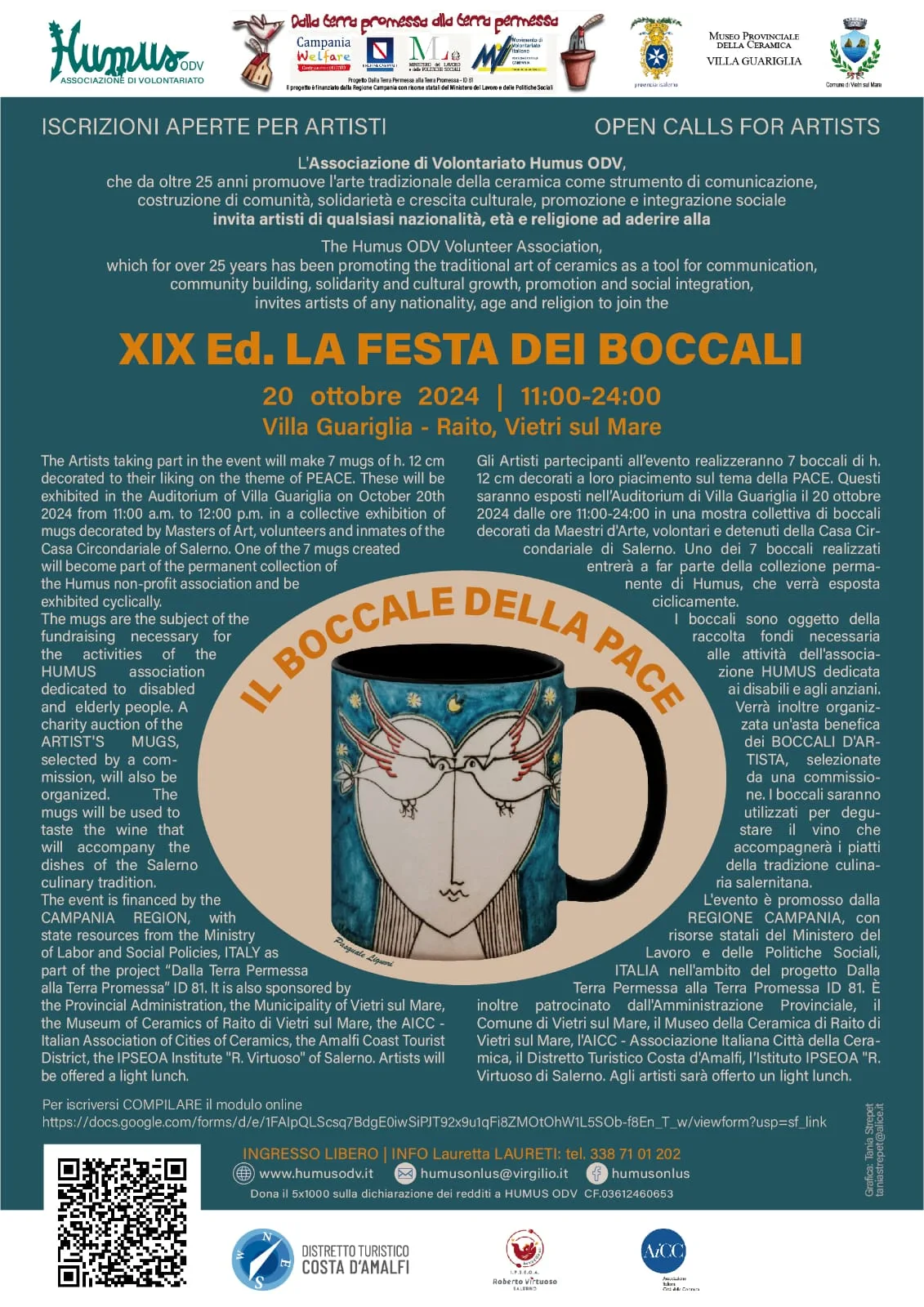 Sono aperte l’iscrizione per partecipare alla ‘Festa dei boccali’, giunta alla sua 19° edizione che si terrà a Villa Guariglia (Raito, Vietri sul Mare) il 20 ottobre dalle 11:00 fino alla mezzanotte.
