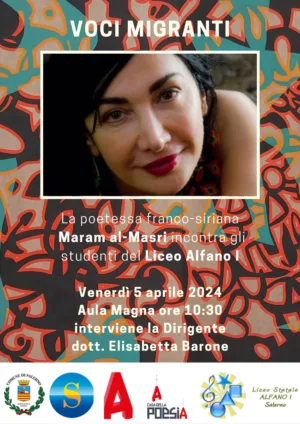 Venerdì 5 aprile, presso l’Aula Magna dell’Alfano I alle ore 10:30, gli studenti incontreranno la poetessa franco-siriana Maram al-Masri.