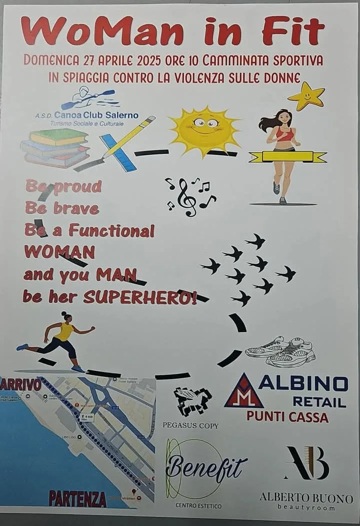 Il luogo dell’evento sarà la spiaggia di Mercatello (altezza Miramare) per poi proseguire verso il Circolo “Canoa Club Salerno”. Durante il percorso tante attività sportive a cura di Floriana Lombardi istruttore di fitness, Isabella Martinetti maestra di taekwondo e Bruna Autuori, insegnante di yoga.